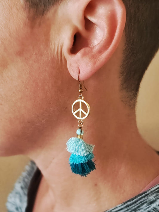 Orecchini Artigianali Boho con Simbolo della Pace e Nappe Colorate